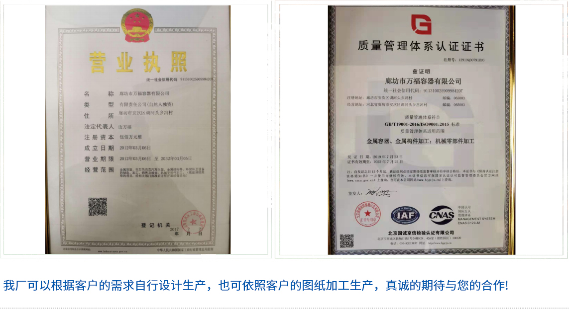 专业从事流体容器生产及非标定制加工,品质保证